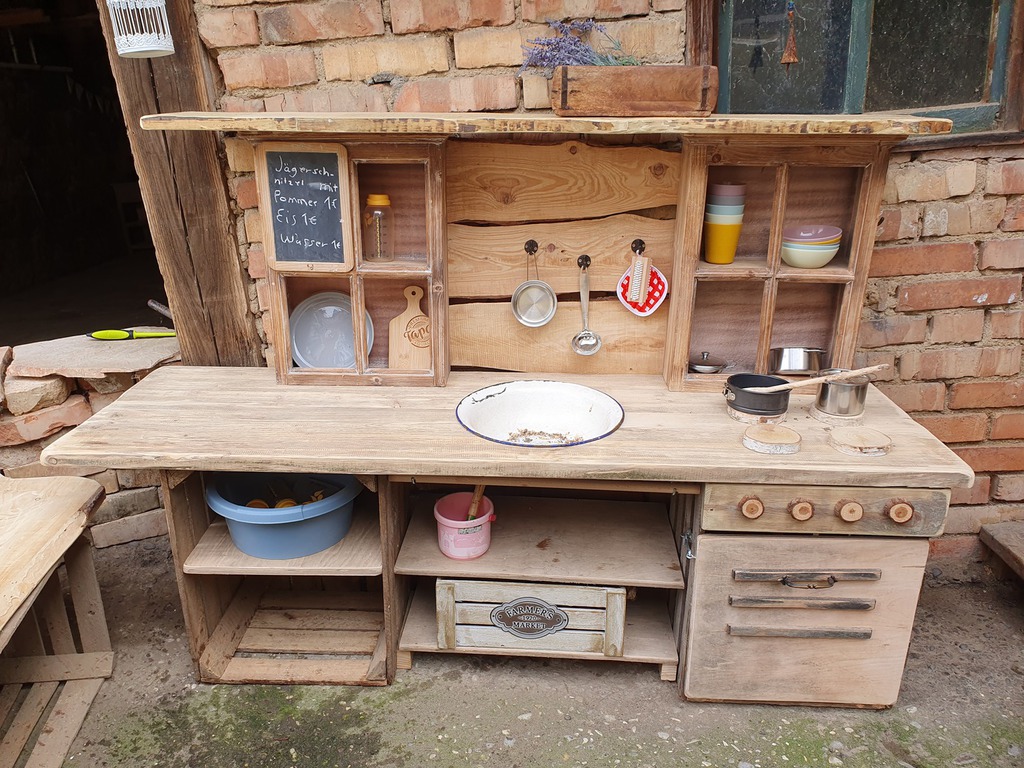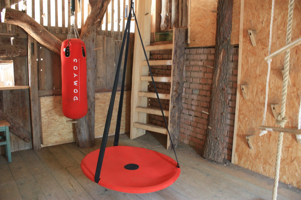 Für die Kinder gibt es neben einem rießigen Baumhaus, ein Knusperzimmer (Kletterscheune), Matschküche, ein kleines "Baum-Piratenschiff", eine Baumhöhle zum verstecken, Rutsche und große Nestschaukel, Sandkasten, Brunnen mit Krebsen, uvm..