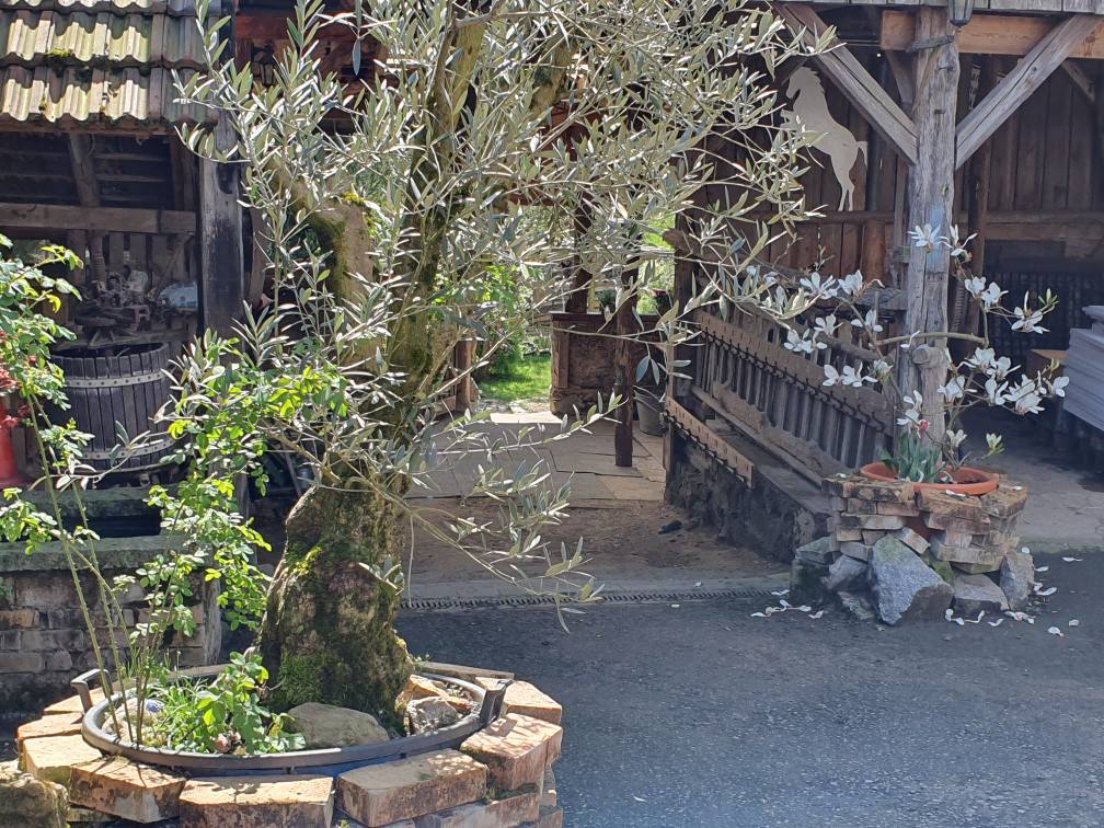 Für die Eltern (Feriengäste) laden gemütliche Sitzecken unter Olivenbäumen ein. Die Feuerstellen ermöglichen ein romatisches Lagerfeuer (Grilloption) und unter der alten Baumweide am Naturteich kann man mal ganz für sich sein und und ein Glas Wein am Abend genießen. Was braucht man mehr.