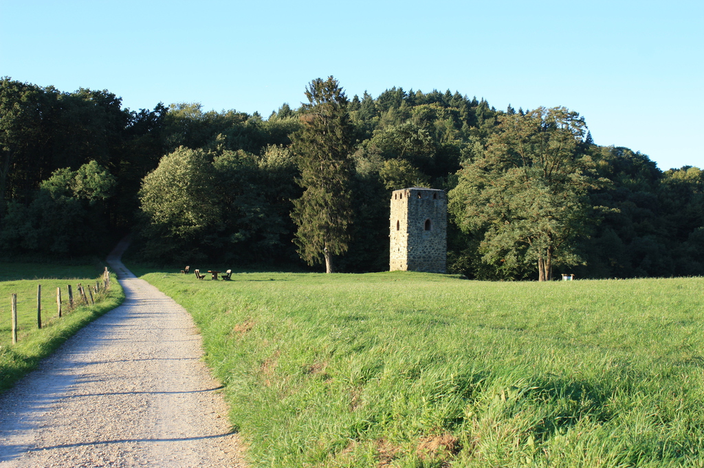 der Vierritterturm fünf Gehminuten vom Hof entfernt und Ausflugsziel für ein Picknick mit Pony.