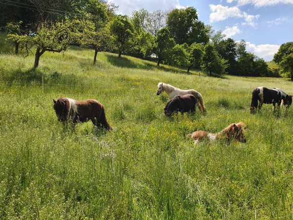 Unsere kleine Herde ist ein bunter lustiger Haufen vom Jungspund bis zur Oma, von klein bis groß, dicke und dünne, mit vielen Zottelhaaren oder auch Schlabberlippe, auch eines mit ganz vielen Punkten.
